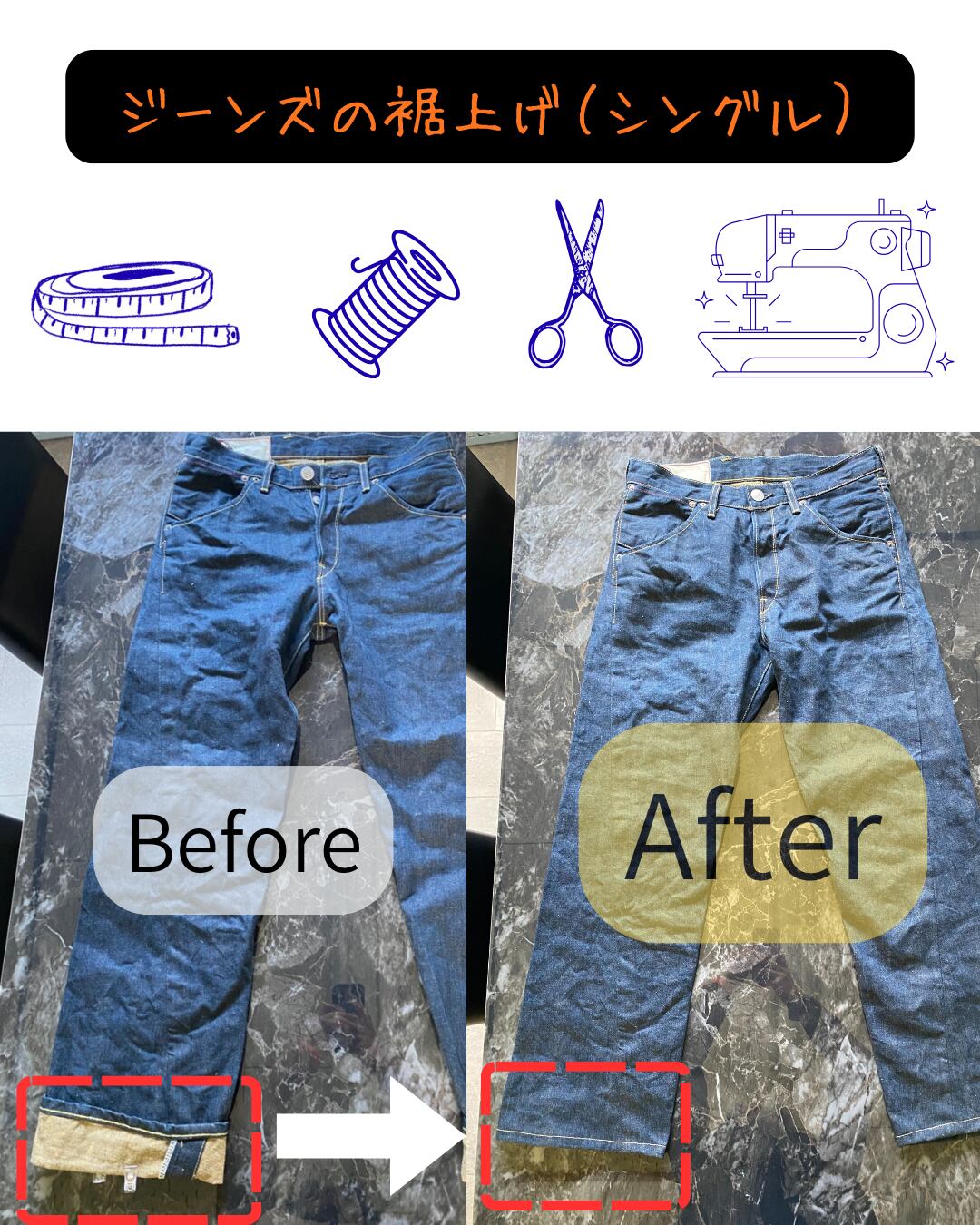 ジーンズの裾上げ(シングル仕上げ)となります。